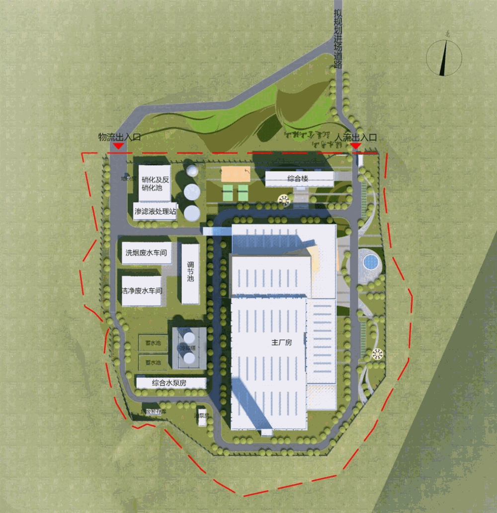 項目選用技術(shù)成熟可靠的爐排爐焚燒工藝和先進的煙氣凈化設施,建筑設計通過大尺度建筑體塊的有機組合,塑造充滿能量感的建筑造型,最終實現(xiàn)全廠節(jié)能、節(jié)水、安全、綠色、美觀的高效運行。